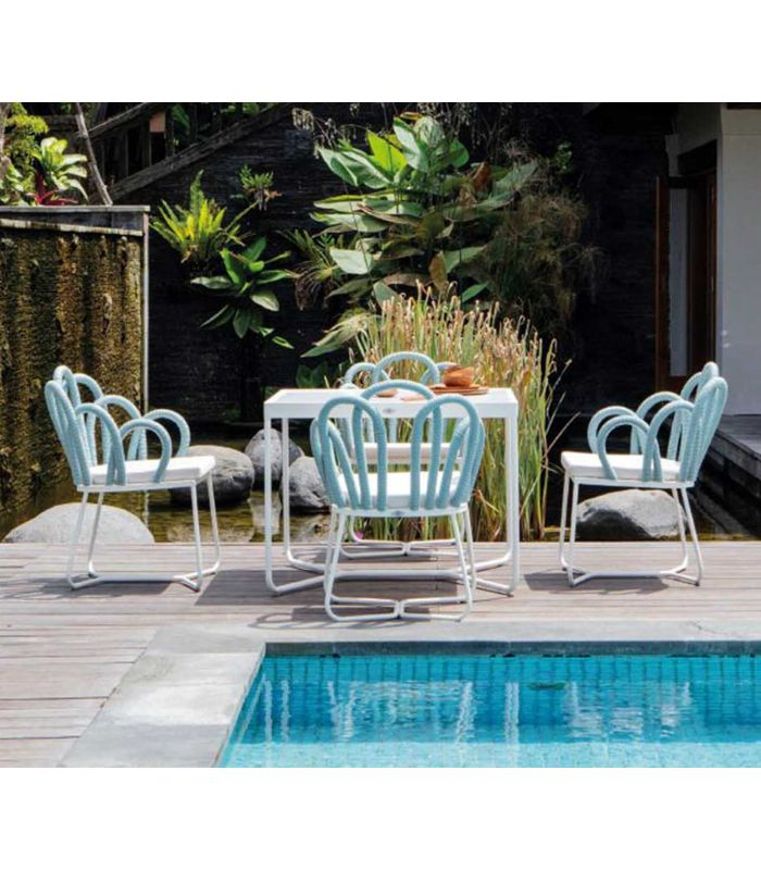 Mesa comedor de Aluminio cuadrada, con medidas ancho 100 x alto 76 x hondo 100 cm varios colores, varios colores. Tanto la mesa como las sillas son piezas independientes y se venden por separado El cristal está incluido, disponible tambien en la opcion de mesa cuadrada
